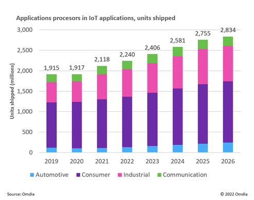 Omdia劃重點(diǎn):汽車和工業(yè)將領(lǐng)銜未來物聯(lián)網(wǎng)應(yīng)用處理器市場增長