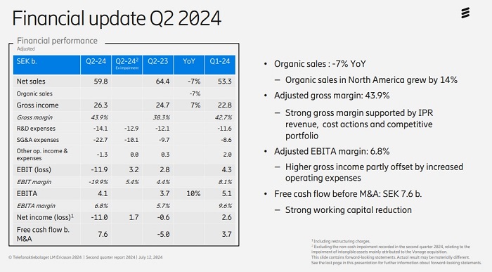 ICC訊(編譯:Nina)上周五,愛立信公布了2024年第二季度財(cái)務(wù)業(yè)績(jī)。愛立信報(bào)告北美地區(qū)恢復(fù)了增長(zhǎng),并實(shí)現(xiàn)了強(qiáng)勁的毛利率增長(zhǎng)和自由現(xiàn)金流。