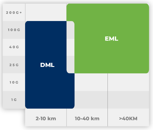 200G+速率以上,EML開始進(jìn)入中距離傳輸場景