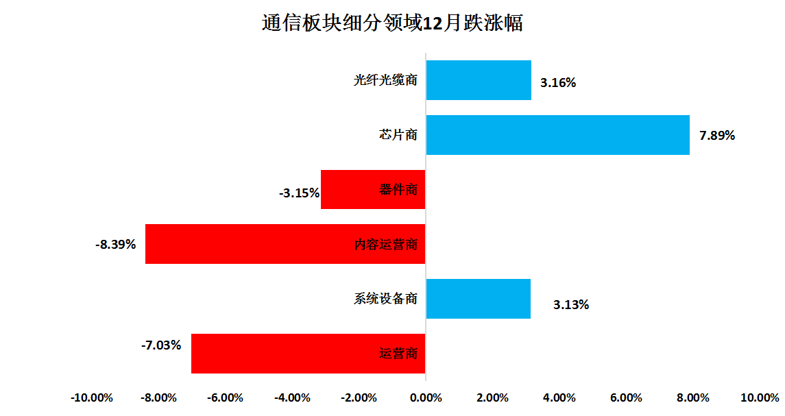 ICC訊 2024年12月通信行業(yè)的股市較上月有所下滑。截止到12月27日,訊石統(tǒng)計(jì)的指數(shù)值為246.62,比上月的256.73下滑3.94%,12月市場整體呈現(xiàn)先下滑后增長的趨勢(shì)。12月除了系統(tǒng)設(shè)備商、芯片商和光纖光纜商實(shí)現(xiàn)環(huán)比增長,其他細(xì)分板塊股指都出現(xiàn)不同程度下滑。未來,隨著政策發(fā)力,工業(yè)企業(yè)產(chǎn)銷率出現(xiàn)好轉(zhuǎn),通信行業(yè)還有增長的空間。