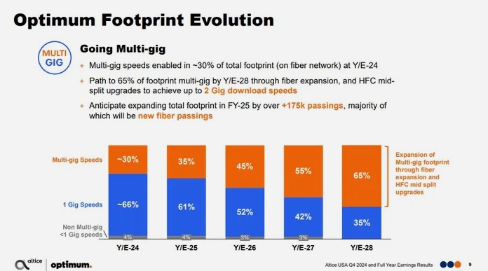 Altice USA估計(jì),目前幾乎95%的服務(wù)區(qū)域已提供1-Gig的速度,并預(yù)計(jì)到2027年底實(shí)現(xiàn)全覆蓋。