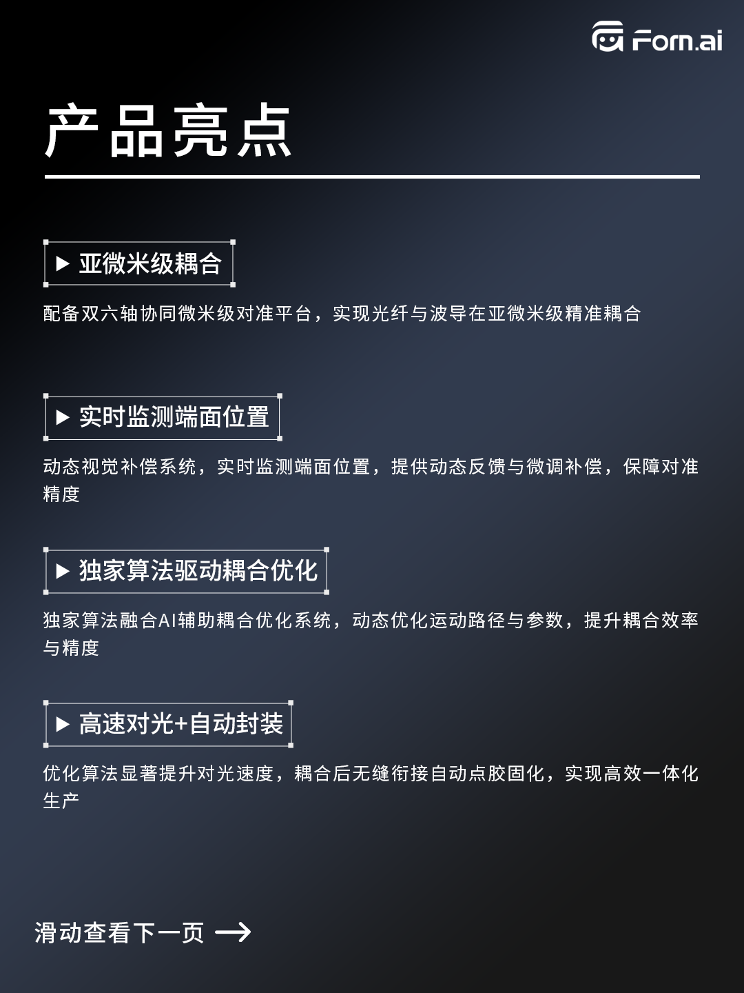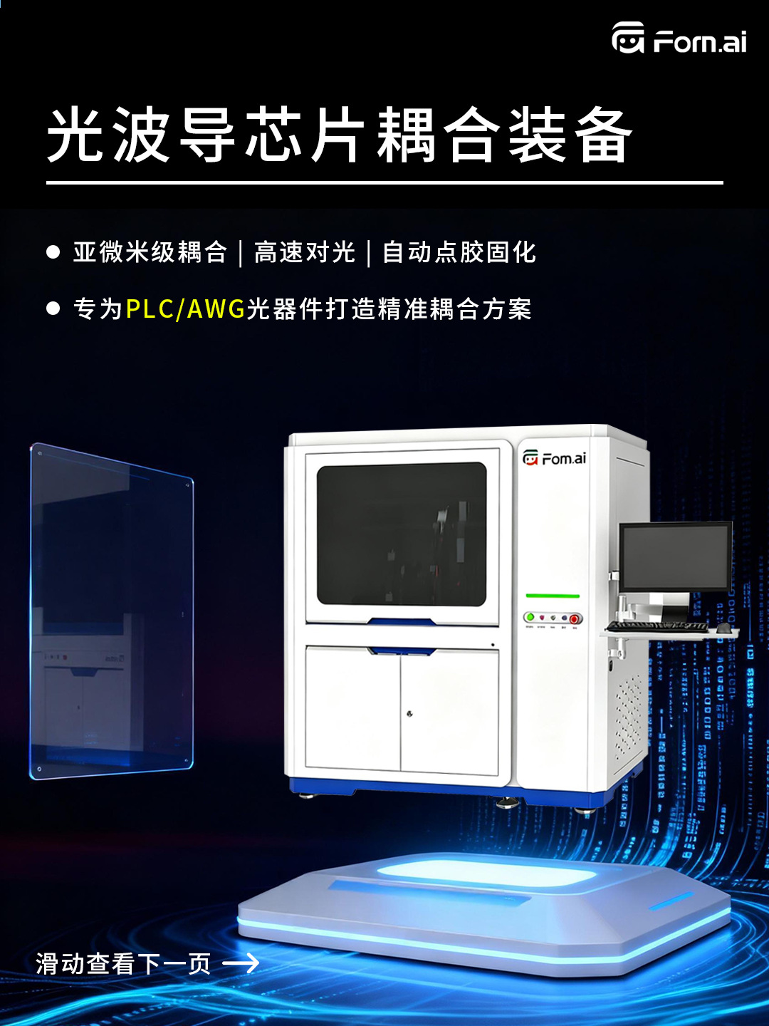 ICC訊 形識智能源于對精密耦合本質(zhì)的深刻洞察,專為PLC/AWG等光通信核心器件打造的高精度、智能化耦合與封裝裝備——光波導(dǎo)芯片耦合裝備。集成雙六軸微米級調(diào)校、動態(tài)視覺閉環(huán)補(bǔ)償與智能優(yōu)化算法,實(shí)現(xiàn)高速精準(zhǔn)對光與自動點(diǎn)膠固化,顯著提升生產(chǎn)良率與效率。