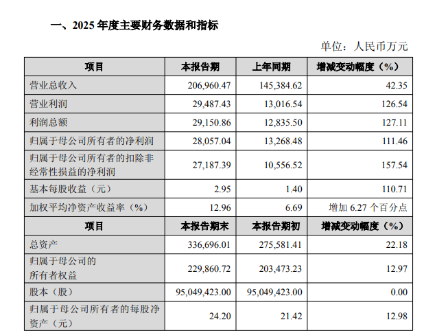ICC訊 2月28日,杰普特發(fā)布2025年業(yè)績快報。報告期內(nèi),杰普特實現(xiàn)營業(yè)總收入 20.7億元,同比增長42.35%;實現(xiàn)歸屬于母公司所有者的凈利潤 2.81億元,同比增長 111.46%。